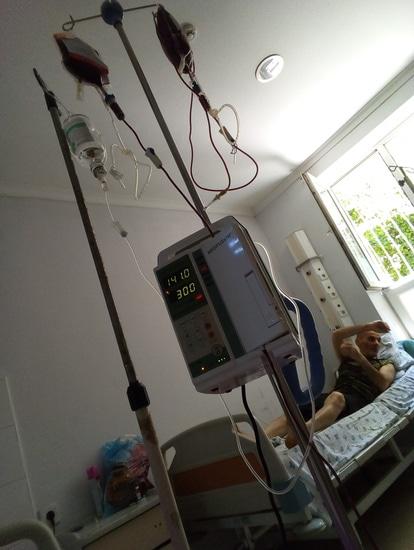 В целом около двух часов я пролежал под капельницами. Меня развлекали милые медсестры, заходящие поговорить и определить по цвету моего лица состояние пациента, забегал врач который просил в следующий мой приход, завтра, не одевать синтетику (завтра спрошу чем ХБ в данном случае лучше), и два пациента в моей мужской палате. Я там не лежу, так как прихожу туда только на неболезненную процедуру чистки крови.
