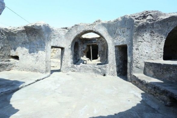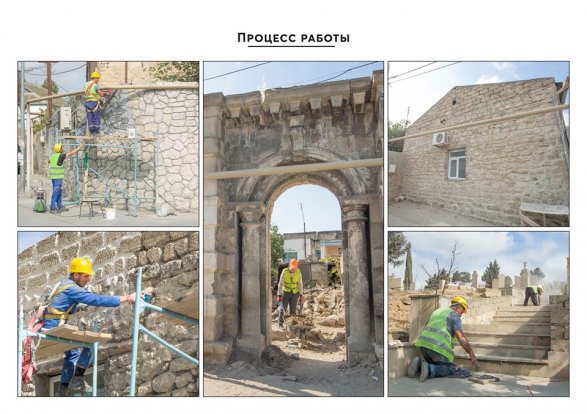 А вот что на этом месте создали в этом году. На 8-м снимке нового поселка показан Овдан - в таких строениях люди брали подземную воду - спускались по каменной лестнице вниз к подземному колодцу и черпали оттуда. Овданы, не действующие, сохранились в Баку и во всех поселках Апшерона. Дальше можно видеть развалин общественной бани и фотографию цеха по изготовлению ковров.