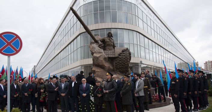 Армяне установили свой танк, первым въехавший тогда в Шушу, на постамент вблизи нашего, [...] города. У нас готов свой танк с надписью на борте Альберт, памяти героя Азербайджана, славного шахида, танкиста Альберта Агарунова. Памятник Альберту установлен в этом году в Баку, а танк его имени мы поставим на своем постаменте, отправив армянский танк не в утиль, а [...]. После победы в Карабахе нам нужно будет много новейшей военной техники. Мы всегда будем поддерживать армию в боеспособном состоянии, потому что живя по соседству с Арменией, даже за бетонным забором, надо быть готовым к войне.