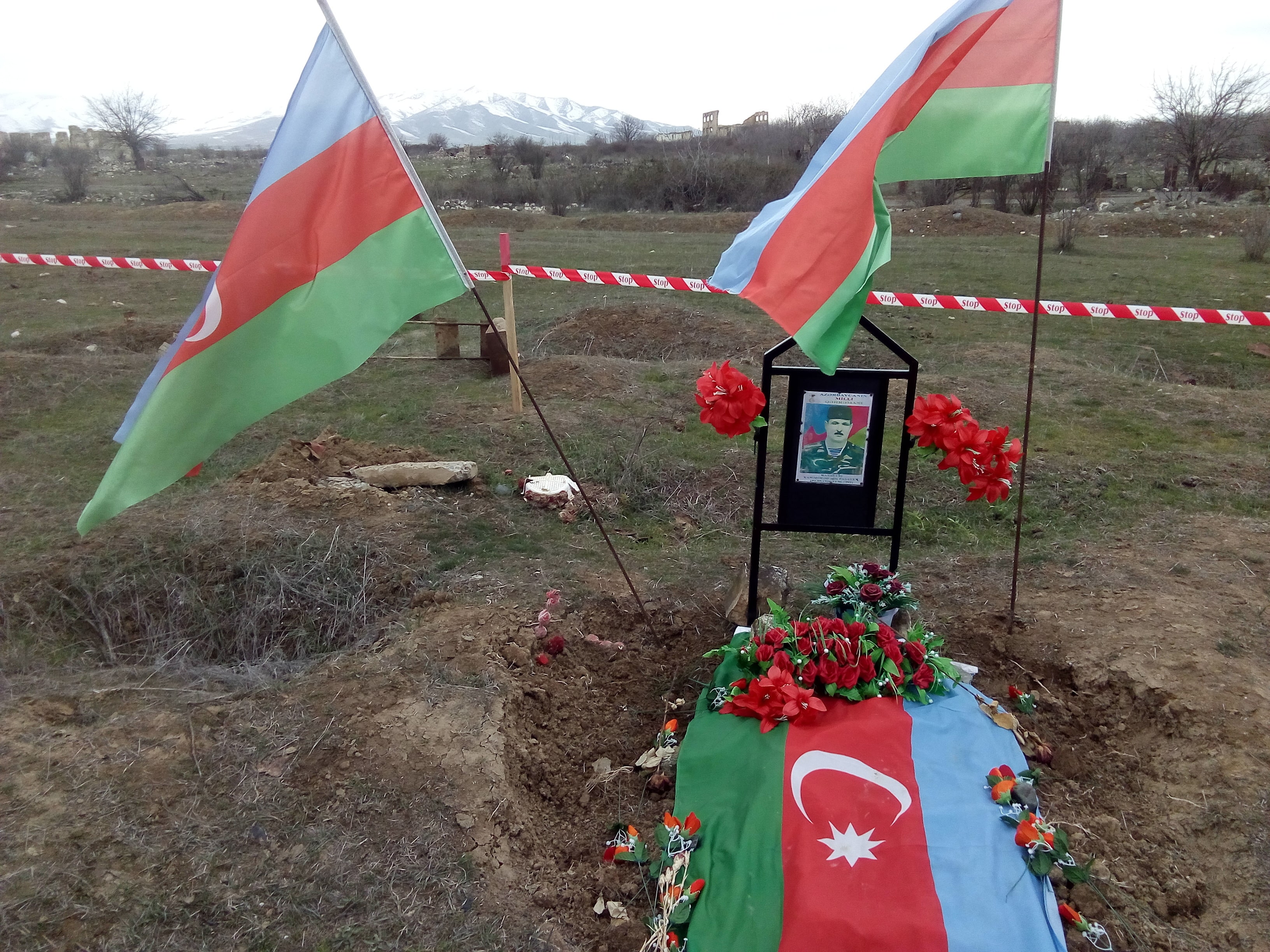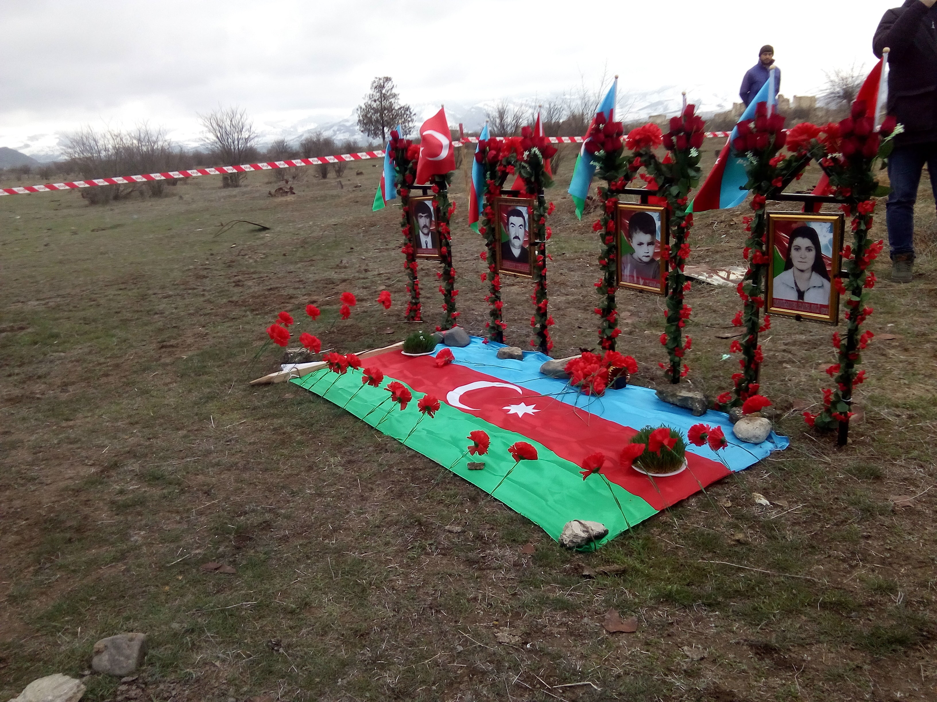 Рядом мы видели трогающую душу картину - возвращающиеся в Агдам бывшие уже беженцы находят места погребений своих родственников и ставят над этими местами металлические, украшенные цветами  рамки с портретами покойных. Чтобы в скором будущем, восстановить все могилы в подобающем для мусульман виде. Так возвращаются агдамцы, начиная с возрождения кладбищ.