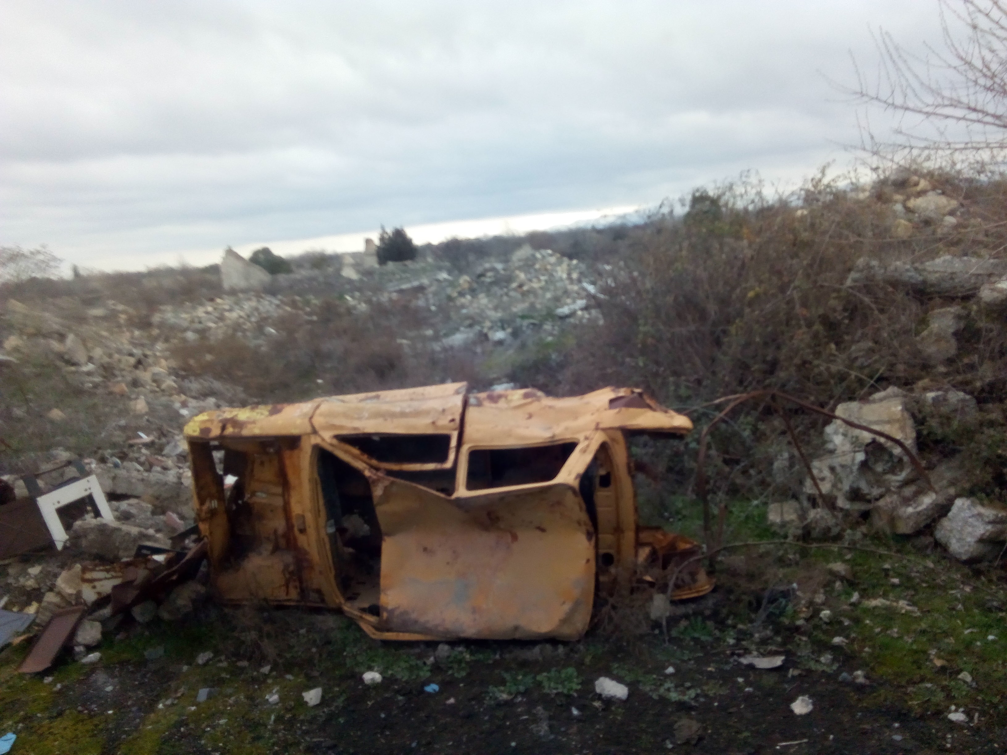 Вчера стадиона там не было, как будто исчез велением волшебника. Ни трибун, ни поля, даже возвышений, на которых располагались рядами зрительные  скамейки - не было!  Армяне унесли скамьи, спортивный инвентарь, ворота, освещение - это можно продать. Поле, беговые дорожки  заросли сорняком - это понимаю. А возвышение вокруг поля - специально выгребли тракторами, погрузили и увезли, раскидали? Зачем?