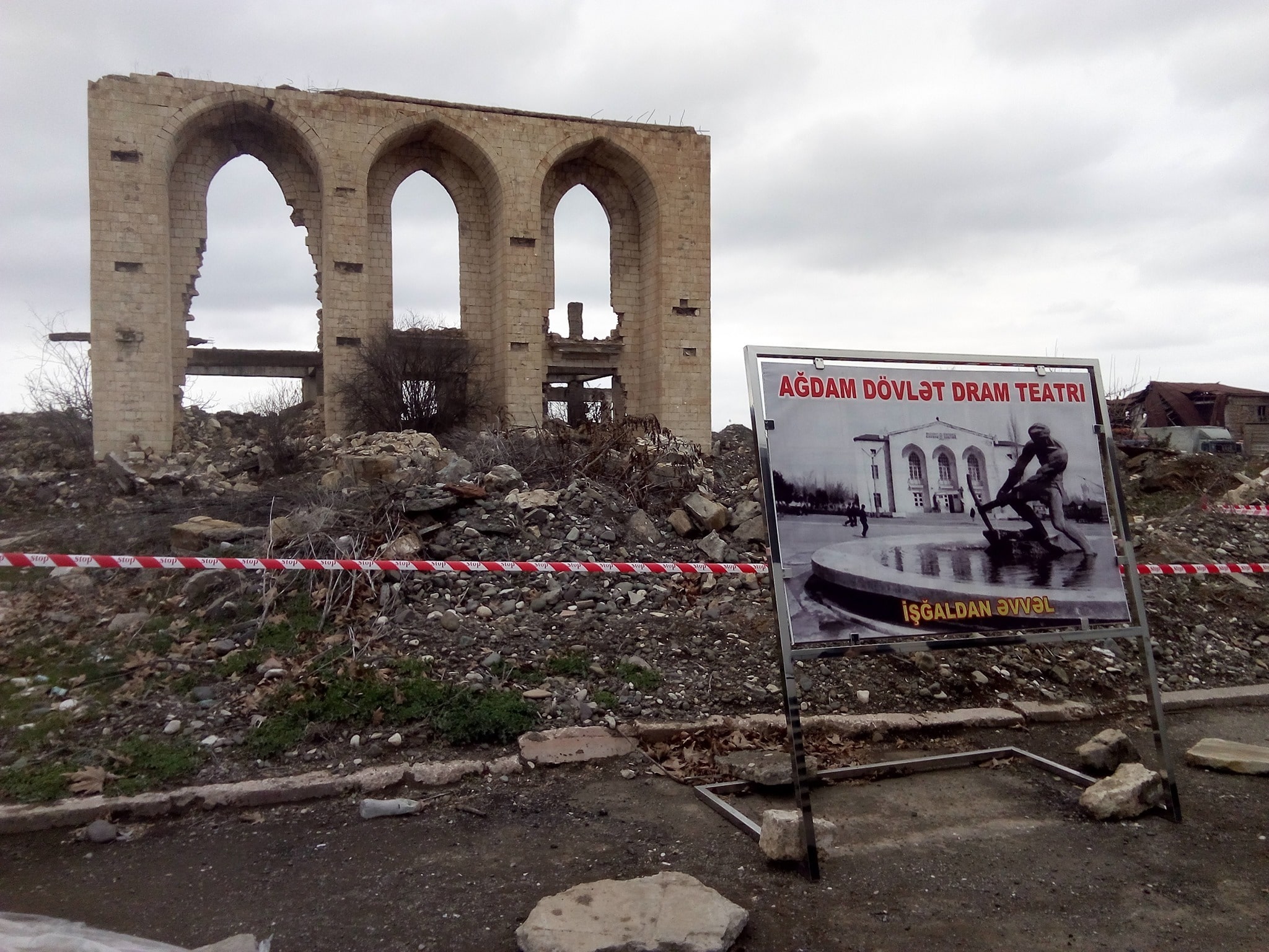 Житель агдамского района, ветеран войны Рэй Керимоглу рассказал о том, как они - школьники села Паправенд, коллективно приезжали в этот театр смотреть "Отелло" и другие классические пьесы в исполнении актеров, имена которых остались в памяти агдамца. "За входной билет платили 40 копеек, 60 копеек за коржик и лимонад. Одного советского рубля, выданного родителями, хватало школьникам на приобщение к мировой сценической культуре", - вспоминал детские ощущения Рэй.  Его детство осталось под грудой бетона и камней. Армяне хотели уничтожить прошлое Азербайджана, чтобы врать о бескультурье азербайджанцев, но показали свое варварство.
