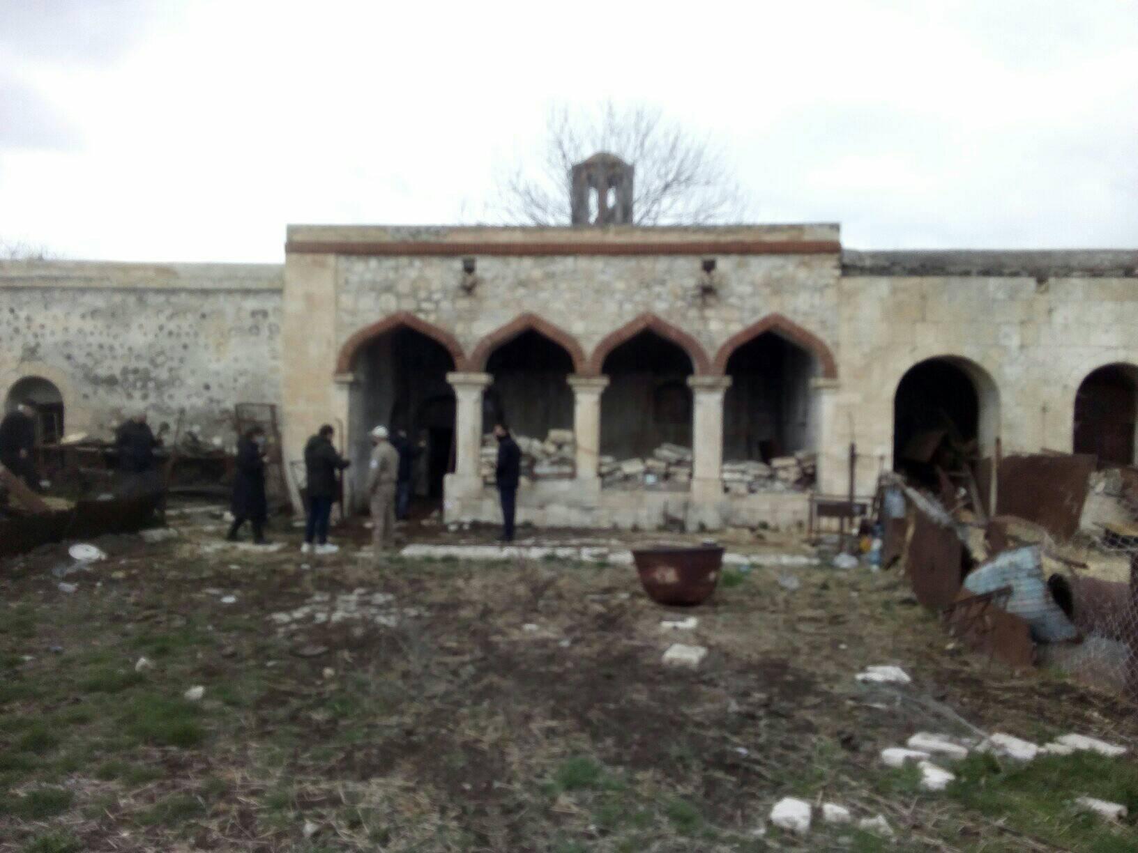 Строения с куполами и историческим, административным зданием сохранились, рядом армяне построили металлический коровник или свинарник потому, что весь комплекс İmarət в годы оккупации использовался в качестве сельскохозяйственной фермы. На месте раскуроченных и вывезенных могильных плит четырех исторических персон жили и гадили коровы или свиньи - можно определить по толстому слою навоза.