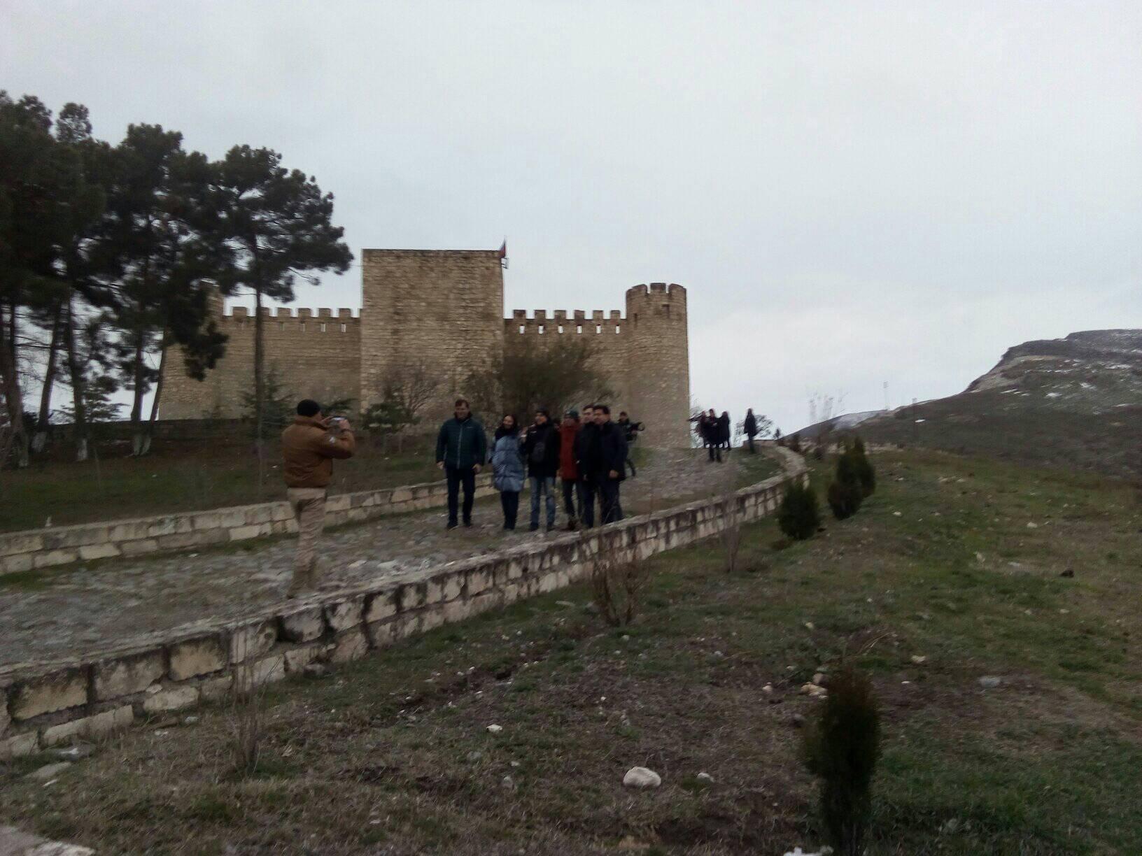 Как во всех провинциальных городах, основные административные,  культурно-спортивные здания в советском Агдаме располагались в центральной части.  Наши автобусы припарковались на пустой площадке, где до захвата города был мемориальный комплекс памяти воинам Второй Мировой Войны. Рядом стоит сохранившееся здание в Агдаме - мечеть Джума. И там же, в пяти минутах ходьбы, неразрушенный армянами архитектурно-исторический комплекс İmarət - усыпальница трех карабахских ханов и ханской дочери Хуршуд Бану Натаван.