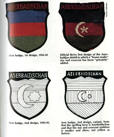 Шевроны (нарукавные знаки) военнослужащих азербайджанского легиона Вермахта.