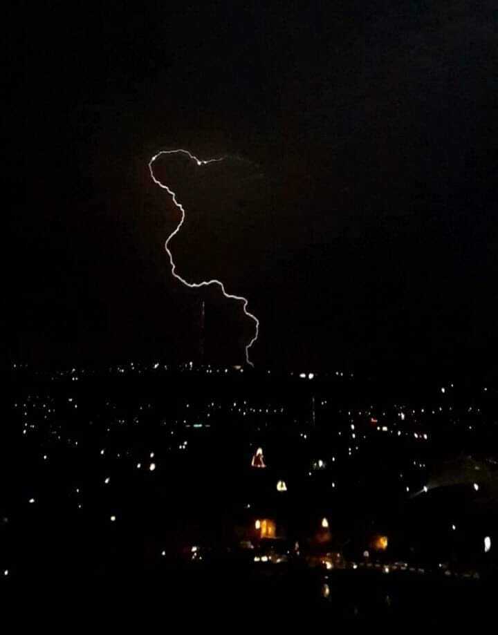В ночь с 23 на 24 мая над Ереваном молния прочертила линию западной границы Армении, с Турцией и Ираном. А восточную границу с Азербайджаном молния показать не смогла. То есть восточной на небе не было вообще