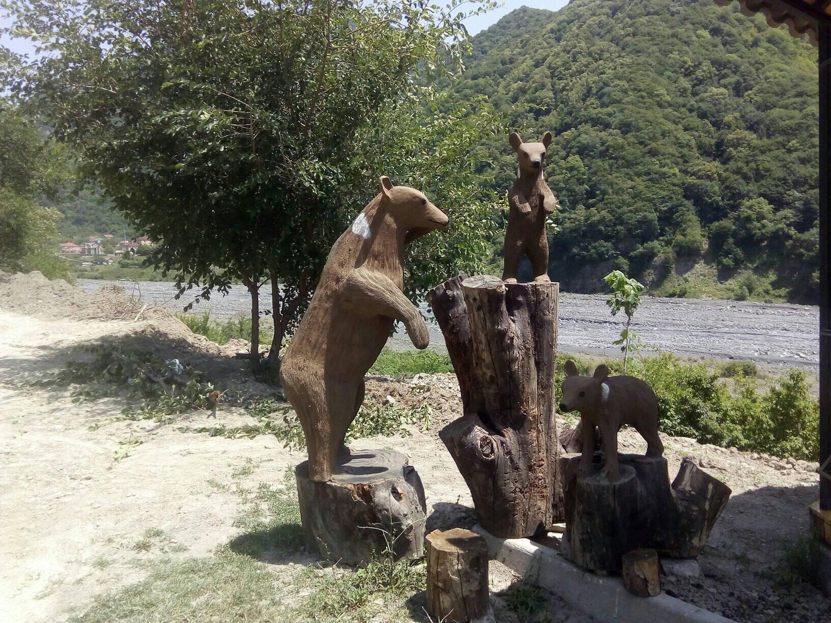 С одной стороны двора стены у них нет, так как весь участок выходит на обрыв и оттуда на урочище реки. Когда идет сель они смотрят на него, забыв про телевизор. Это место видно за мишками.