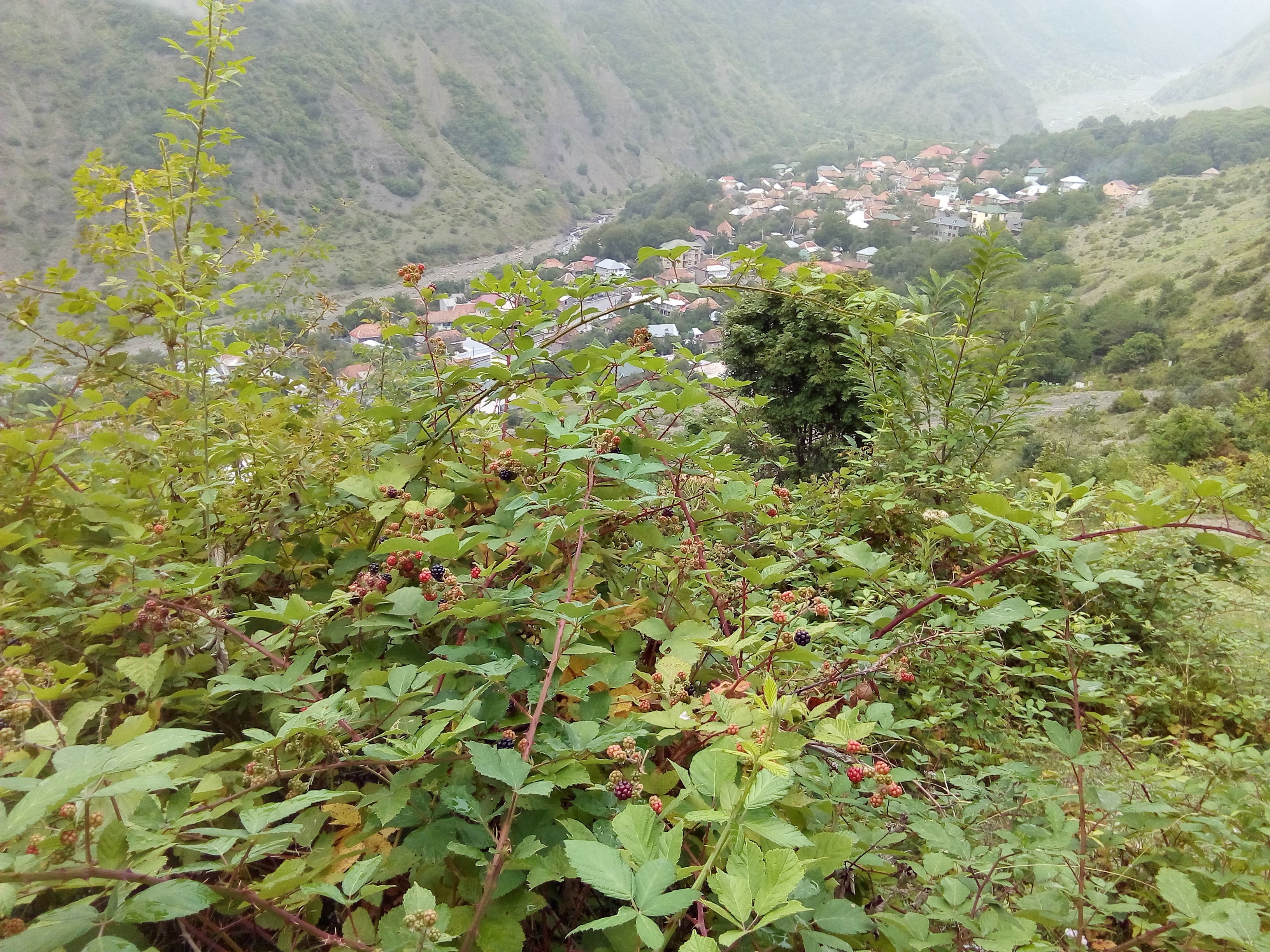 Фото вверху - на горной тропе, вверх к башне, поел ежевику. Она начинает зреть, черные ягоды просят, чтобы их сорвали и вкусили сладко-кислый сок, совсем как в той рекламе, где мультяшный заяц вливает в себя бутылку сока и она разливается на него.
