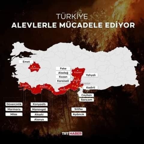 Главное - почему пожары возникли одновременно и на огромном побережье, заставленном курортными объектами? Сейчас самый разгар турбизнеса в Турции. Пожар может появиться в одном-двух очагах, но как на всем побережье? Смотрите карту
