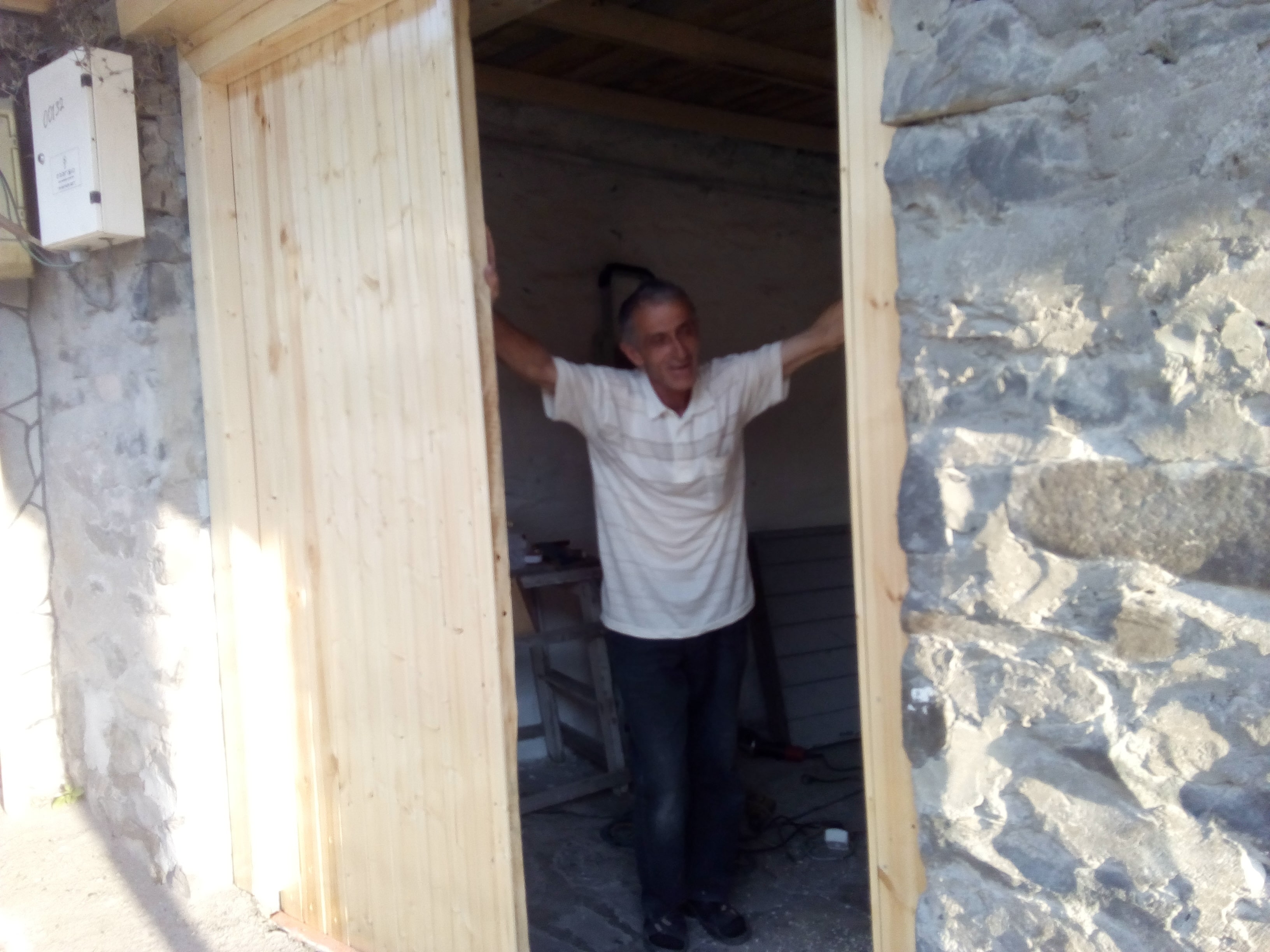 Мастер Али и фронтон его дома с изображением исторической башни, построенной над селом. Об этой башне я рассказывал здесь