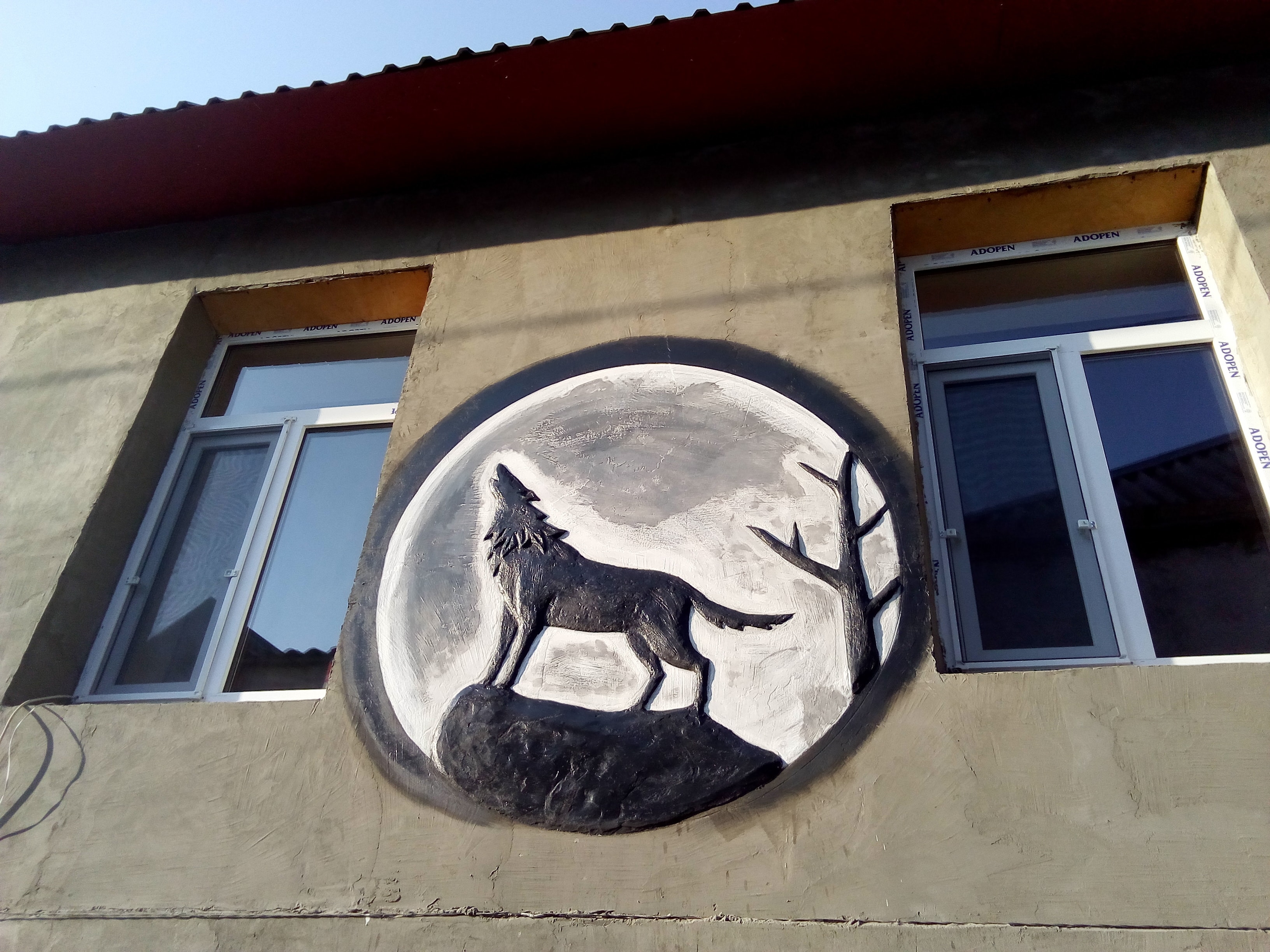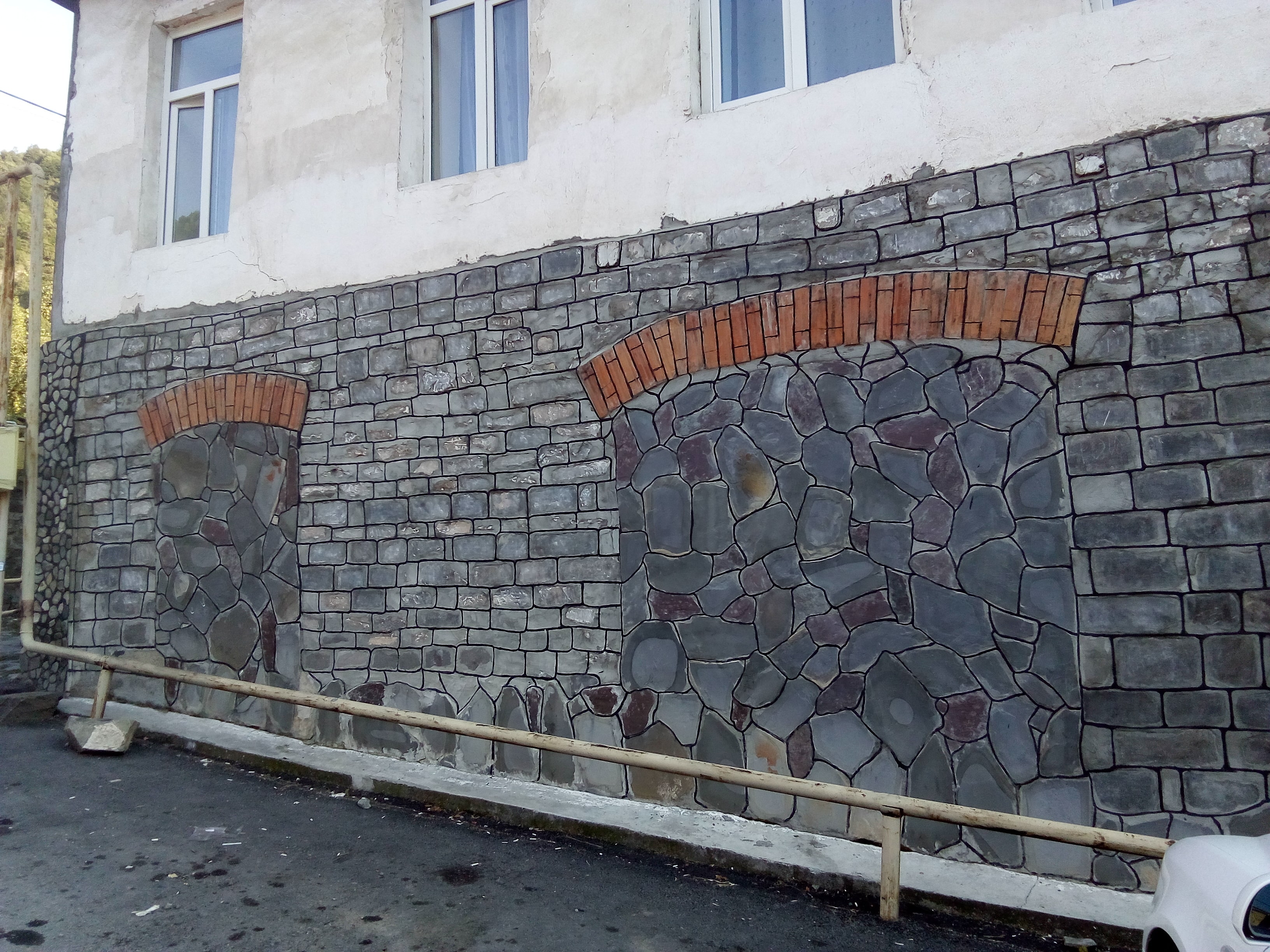 Владелец дома под фото с конями разрисовал фронтальную стену так, чтобы показать места ворот, которые были в доме в середине прошлого века. Выразил уважение к прошлому своего жилища