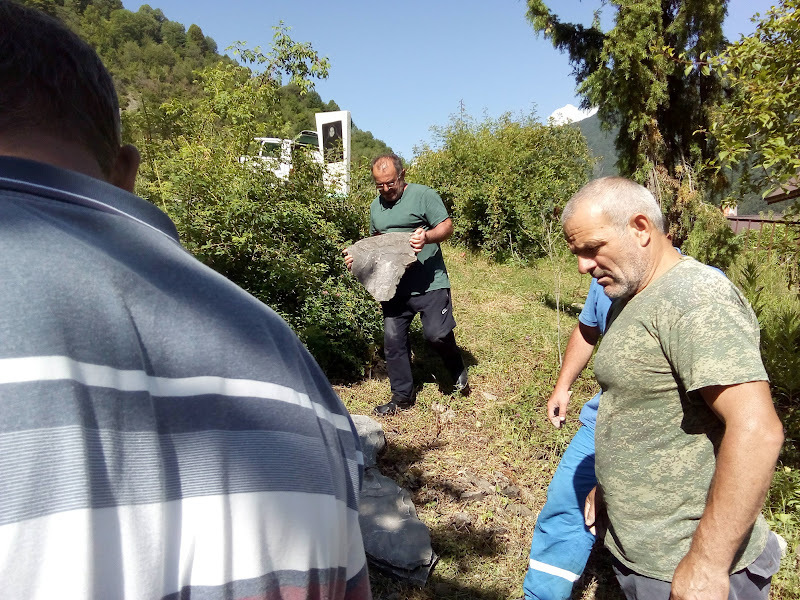 Из села также привезли плоские скальные камни - яц, для укладки поверх могилы, чтобы ветер и дождь не смысл землю