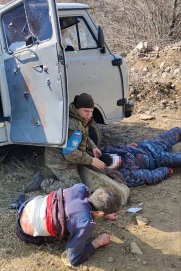 Увидев военный УАЗ с пассажирами, группа потребовала остановить машину. Из нее прицельным огнем убиты два наших военнослужащих. Тут надо пояснить: азербайджанские военные обязательно в бронежилетах. Если бы первыми открыли огонь наши, они бы остались живы, так как стреляли бы по движущейся машине, находясь в укрытии. Значит, стреляли из УАЗ-а армяне, прицельно в голову. Двух азербайджанцев убили. После этого находящиеся на дороге наши бойцы обстреляли машину, причем следы от пуль показывают, что целились в места пассажиров и бензобак. Трое армян убиты на месте, один в тяжелом состоянии, ранен. Все армяне были вооружены автоматическим оружием, что указывает на лживость версии об их полицейской, или таможенной службе и поездке на дежурство. В Азербайджане не может быть враждебной нам полиции, таможни и других структур. Если есть - необходимо их прекратить.