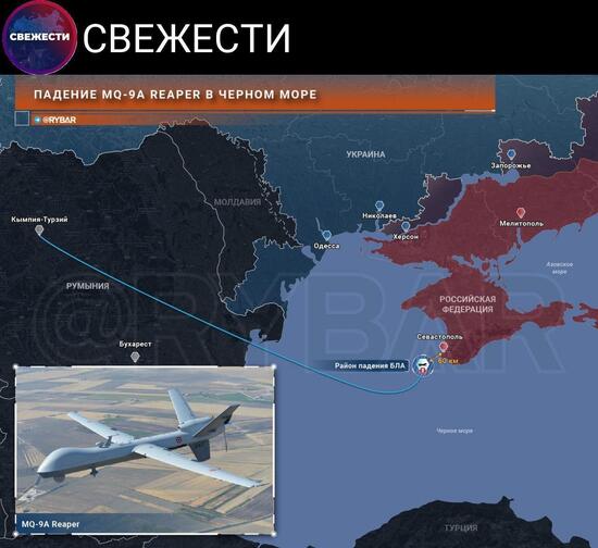 Российские истребители перехватили и приказали нырнуть в море американский БПЛА, в нейтральном небе. Героизм, конечно, тем более что в внутри БПЛА живой души нет, он же беспилотник,  одни микросхемы. Боевая задача выполнена, враг разбит, Америка повержена, догнали и перегнали