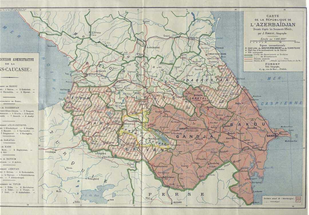 Почему бы нам не пойти дальше в историю, и не потребовать восстановления границ существовавших в 1918-1920 годах? Ялчын Балогланов показал карту из архива ООН. Азербайджанская Демократическая Республика в своих признанных границах. Зангезур, Гойча махал и часть региона Борчалы при советизации были аннексированы со стороны Армении при поддержки Кремля.