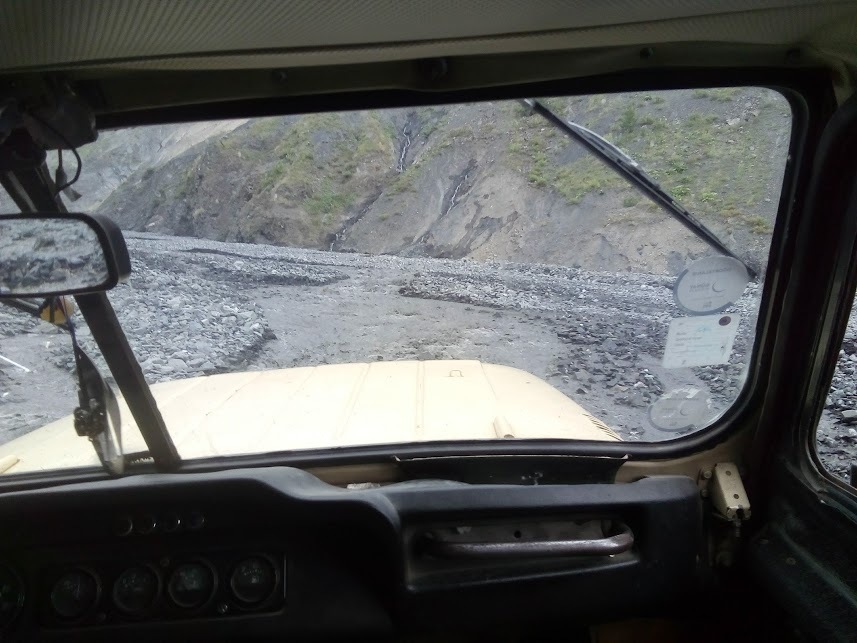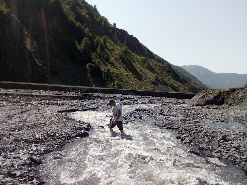 На обратном пути один километр проехали в УАЗике, чтобы снова не лезть в бурную черную реку с катящимися в ней булыжниками. Шофер остановился, предложил подвезти. Из окон машины видно как героический УАЗ едет по бурлящей реке.