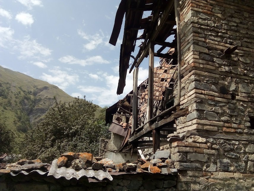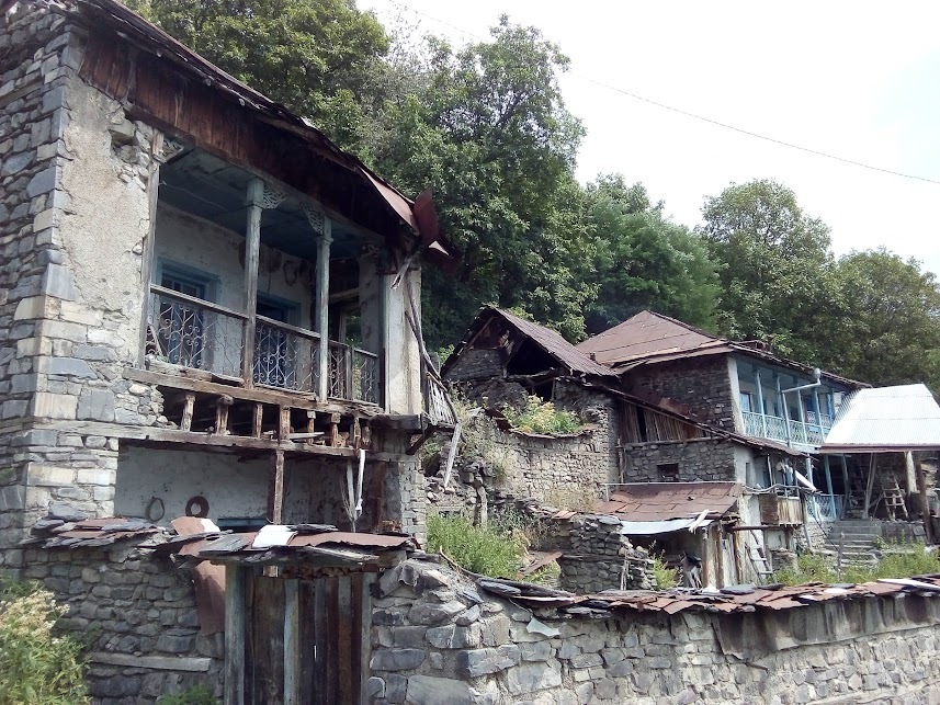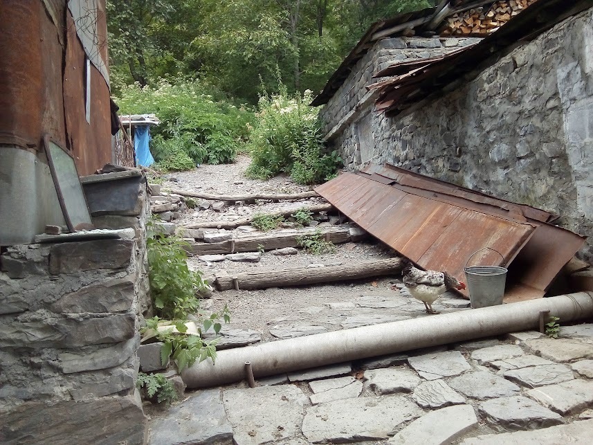 В селе мы фотографировали дома, между ними лежат жернова от мельницы,  остовы автомобилей, предметы утвари средневековья. Представляю, если бы разрешили пошарить по чердакам, чего там только нет.