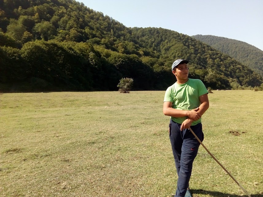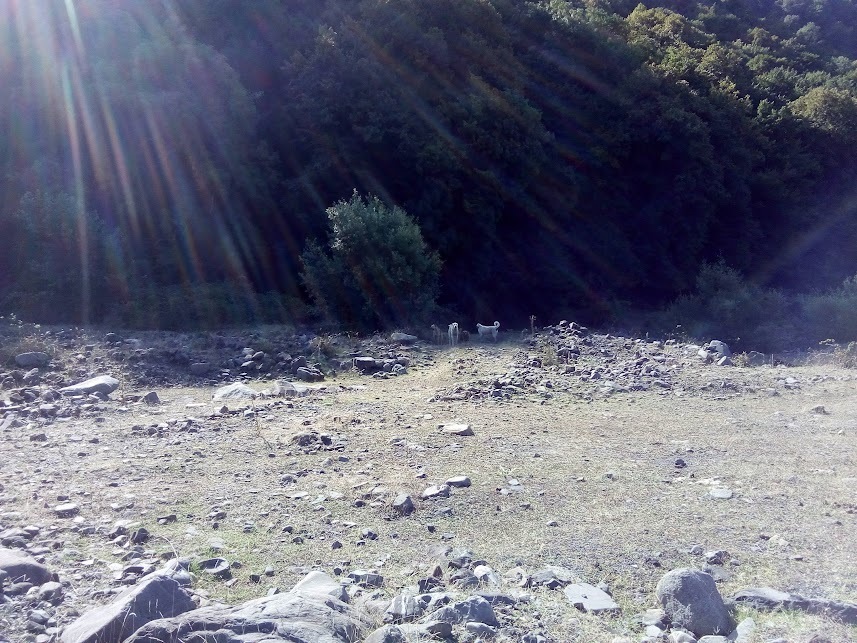 Нашли эту вышку, от нее пошли по  той дороге, вернее тропе и заблудились упершись в кустарники. Вернулись по другой стороне горы к той вышке. Пошли далее вдоль горы по реке, встретились с сворой пастушьих собак которые лаяли на нас пока мы не нашли молодого пастуха. Тот нам советовал отталкиваться от вышки с камерой, после нее найти дерево с указателем, на нем написано Cinni Qala, а дальше по земляной дороге и потом влево на башню.