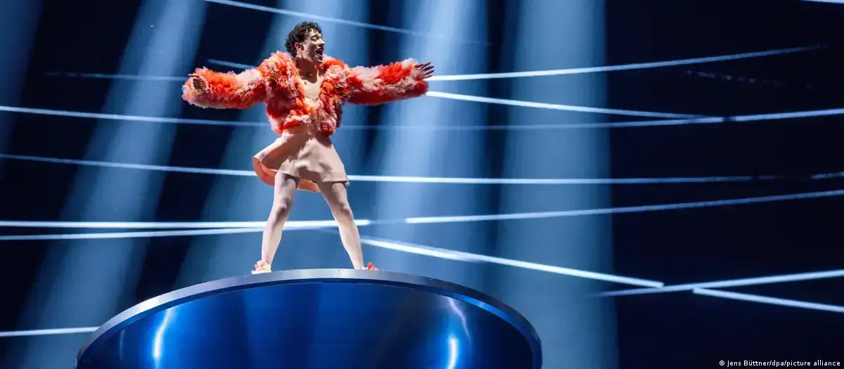 Сейчас открыл сайт Евровидения, смотрю: победил швейцарец Nemo в розовой юбке  с нулевой в смысле музыкальной композицией песней,   и сложной двигающейся платформой-тарелкой на сцене. Главное, как я понял, в его номере это тема ЛГБД.