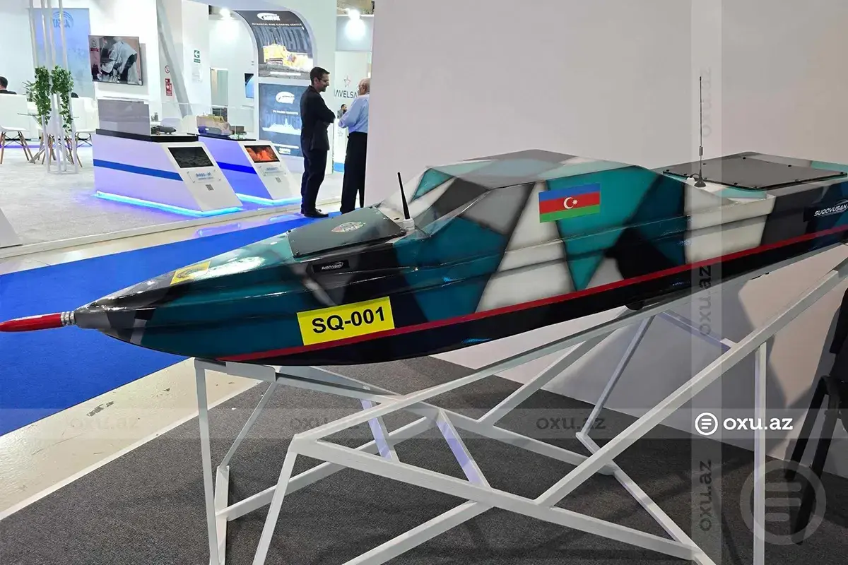 Два азербайджанских надводный беспилотника. "Суговушан": длина "Суговушана" - 2 200 мм, ширина - 500 мм, вес - 60 кг, дальность полета - 20 миль, скорость - 50 км/ч, тип взрывчатки - TNT, масса взрывчатки - 10-15 кг. Этот дрон предназначен для противодействия угрозам с моря.