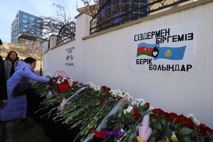 Третья - казахстанцы принесли гору цветов, узнав о трагедии самолета AZAL.