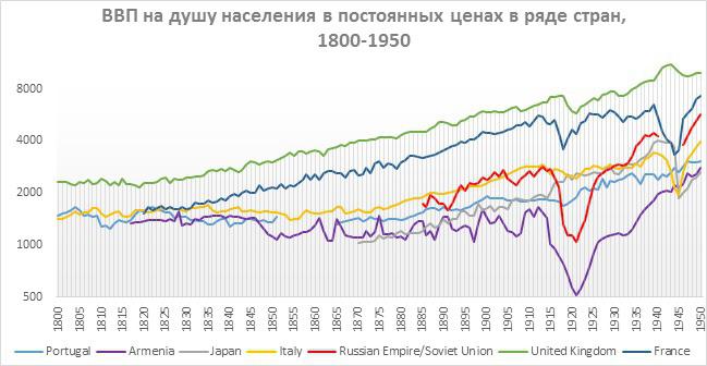 ВВП на душу населения в период с 1817 по 1912 год вырос не очень значительно, что неудивительно: в этот период на той же территории почти в 10 раз выросло население и, хотя в Армении уже началась урбанизация и модернизация, но рост промышленного производства был не столь существенным. Поэтому рост был вызван скорее повышением производительности труда в селах.
