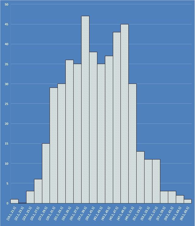 График 3. Гистограмма распределения числа участков по явке, на выборах 2017 года