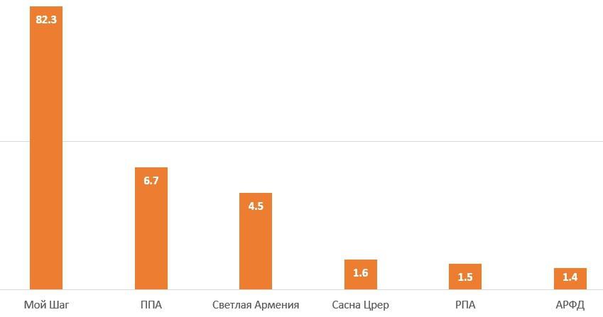 Судя по данным таблиц 5 и 6, поддержка революционной силы колебалась на протяжении последних 7 месяцев на уровне 70%-86%. Уровень поддержки ППА был в районе 10%, а РПА – снижался с 5% до 1.5% сейчас. Кроме того, в последние дни поддержка выросла и у партии «Светлая Армения», достигнув 4.5%.