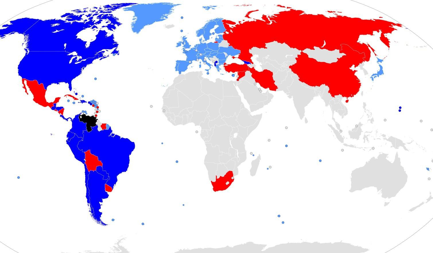 Карта политической позиции стран по выборам 2018 года в Венесуэле. Источник – Википедия, автор ZiaLater.