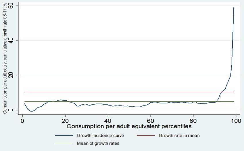 График 4. Кривая роста потребления по перцентилям, 2017 в сравнении с 2008 г.