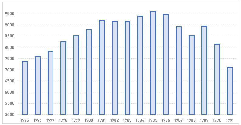График 1. Динамика ВВП на душу населения Советской Армении, 1975-1991