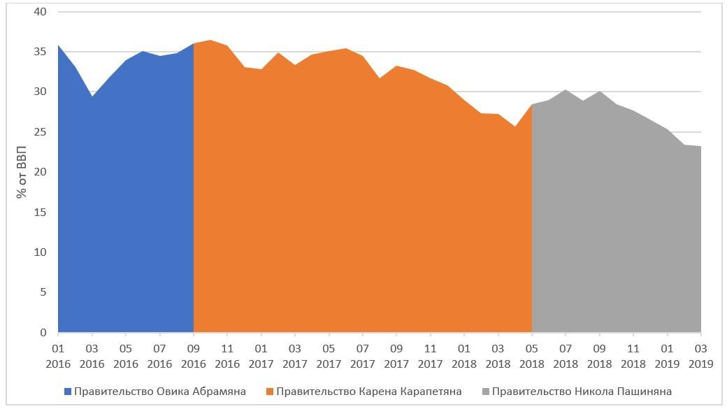 По оценке, получается, на конец февраля - начало марта доля теневой экономики в ВВП составляла 23.3% ВВП, что уже приближается к показателям позднесоветского периода - в 1989 году это было 21.2% ВВП (далее, конечно, показатель быстро рос). Наивысшим показателем прошлых властей были 25.7%, зафиксированные к началу апреля 2018 года, то есть, новое правительство уже к началу 2019 года смогло преодолеть тот показатель, пусть и не сразу, поскольку примерно на 9 месяцев отсутствие политической стабильности и ослабление институтов привело к росту тени.