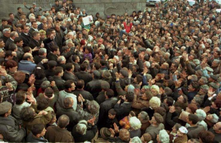 В Армении и сейчас сильна ностальгия по советским временам (см. Как Армения стала самой сердитой страной мира в опросе Gallup). Тогда она, вероятно, была еще сильнее. Точнее, как это выражалось процентно, сказать не могу, но то что распад СССР тогда переживался острее – очевидно: об этом говорит например тот факт, что Коммунистическая партия Армении тогда демонстрировала серьезные результаты.