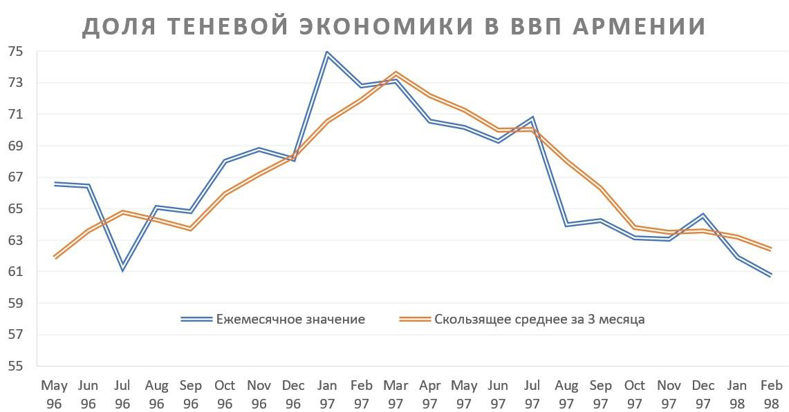Кочарян заявил в своих мемуарах, что за пять месяцев он смог серьезно улучшить ситуацию в стране в разных областях. Я попробую проверить это, рассмотрев все данные касательно 1996-8 гг., которые имеются в месячном или хотя бы квартальном разрезе.