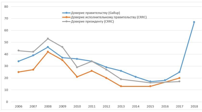 График 1. Доверие власти Армении, CRRC / Gallup, в 2006-2018