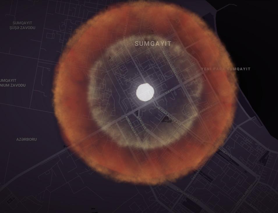 В последние пару лет распространились симуляторы ядерного взрыва, которые позволяют проверить эффект атомного взрыва на разных городах мира. Шутки ради, я решил симулировать взрыв ядерной бомбы над городами Южного Кавказа. Начнем с трех столиц, на которые можно сбросить трехсоткилотонную бомбу W-87, причем устроить взрыв как в воздухе, так и на земле. Разрушительный эффект от взрыва в воздухе больше, поэтому применим этот метод.