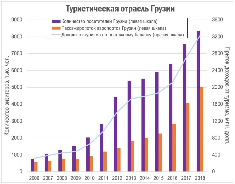 В 2018 году Грузия имела 8.3 млн. посетителей, из которых 1.7 миллионов были россиянами, но россияне, посещавшие Грузию, гораздо чаще являлись туристами, чем граждане, к примеру, Армении, Турции и Азербайджана, которые часто посещали Грузию с транзитными и прочими целями. Кроме того, россияне платежеспособнее граждан этих стран и поэтому доход от одного российского туриста для грузинского турсектора выше.