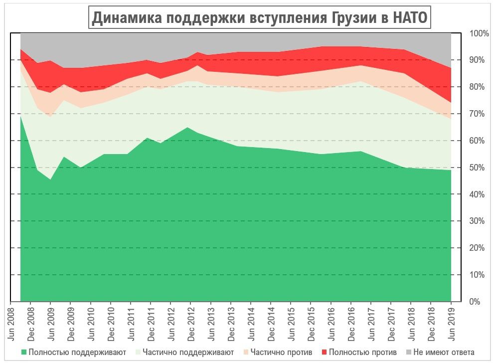 График 3. Динамика поддержки вступления Грузии в НАТО, 2008-2019 гг.