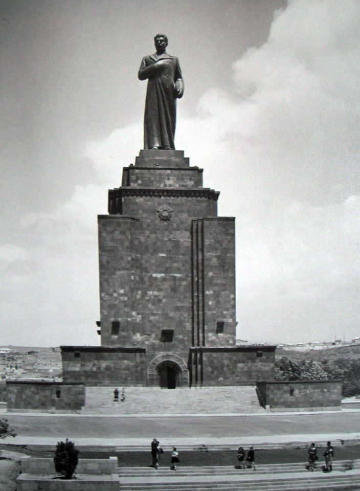 До 1929 года Сталин не был особо известен широкой общественности, да и даже во всей партии. Но тот самый «Великий перелом» был основан на многолетней практической работе по взятию всей партии и всего государства под контроль и в 1929 году это стало для всех фактом. Уже в середине 1920-ых, в честь Сталина, как и в честь ряда других большевистских вождей, были названы ряд городов – Царицын был переименован в Сталинград (ныне Волгоград), Юзовка была переименована в Сталино (ныне – Донецк). Но настоящий культ личности начался с 1929 года. С 15 по 25 декабря в СССР отмечалось пятидесятилетие Сталина, фиксируя культ личности. С тех пор во всех документах, публикациях, песнях и фильмах возвеличивался Сталин как непогрешимый вождь, великий вождь, отец народов, лучший друг писателей (и других категорий населения), а уже в 1930-ых гг. его начали благодарить за счастливое детство. 16 октября 1929 года город Дюшамбе переименовали в Сталинабад (ныне Душанбе). В 1929 году был установлен первый памятник Сталину, и все больше улиц начали переименовывать в честь Сталина. Тогда ереванскую улицу Армянская переименовали в проспект Сталина (потом он был переименован в проспект Ленина, а с 1990 года – Маштоца). В 1950 году памятник Сталину установили и в Ереване. Но об этом – отдельно.