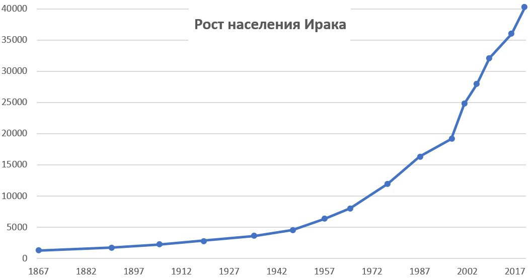 График 3. Динамика населения Ирака за 150 лет, по переписям