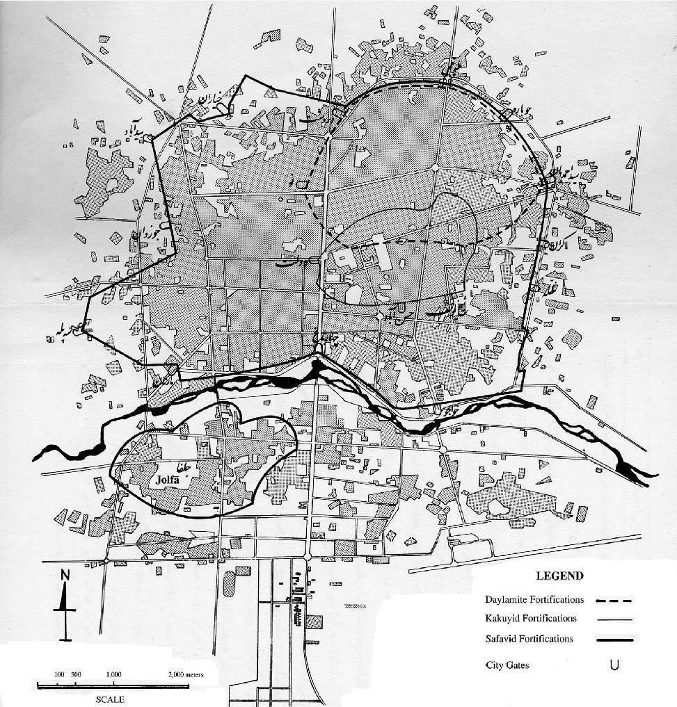 Карта исторического развития Исфахана, энциклопедия Ираника.
