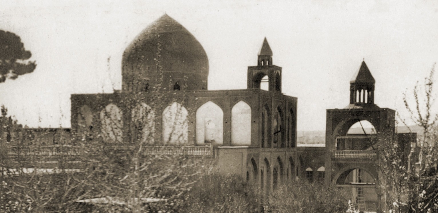 Кстати, Джульфа, отмеченная слева внизу - это армянский квартал Нор Джуга, образованный армянскими выходцами из той самой Джульфы в Нахичеване, депортированными в 1603-4 гг. Там несколько армянских церквей, в том числе собор Ванк. Фото 1930х гг. Тут можно увидеть фрески внутри церкви.