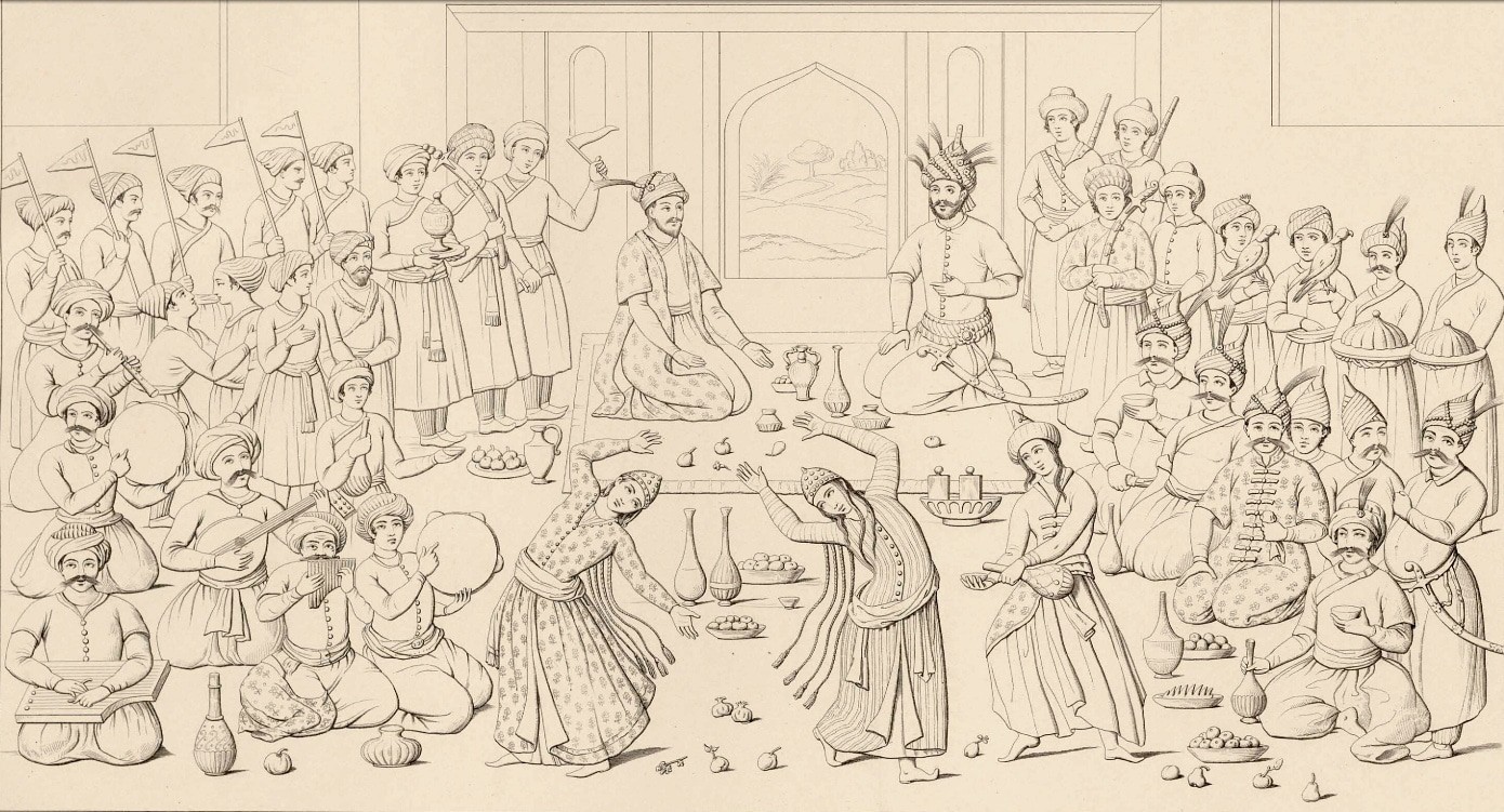 Гравюра "Шах Аббас принимает индийского султана Тамареб Омайума" (~1600), привожу по Чарльз Таксиер (Descriptions de l'Arménie, la Perse et la Mésopotamie, 1842)