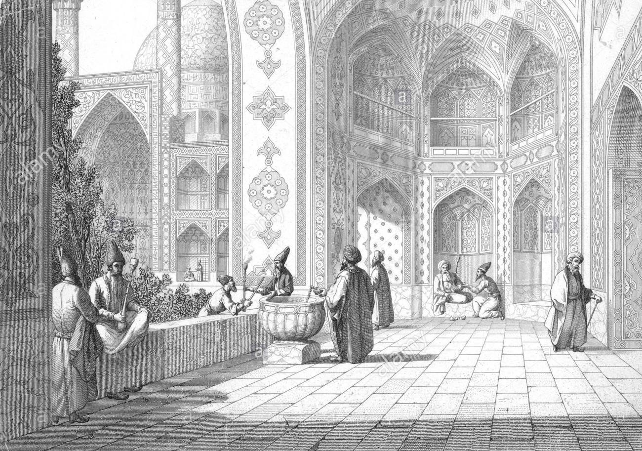 Гравюра - двор мечети Имама в Исфахане