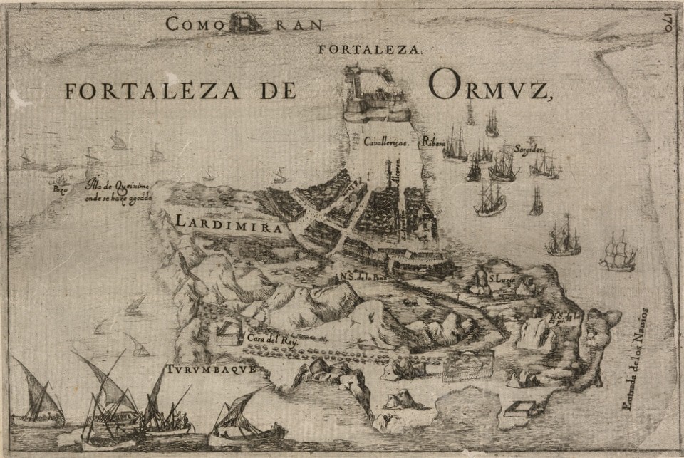 Довольно большого внимания со стороны европейских картографов удостоился портовый город Ормуз на юге Ирана. В XIII веке туда прибывал Марко Поло. В 1515 году город был колонизирован португальцами и оставался под их контролем на протяжении более ста лет, пока в 1622 году они не передали город персам.
