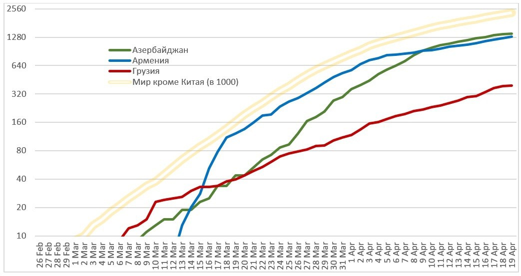 Сейчас же немного статистики касательно хронологии распространения коронавируса на Южном Кавказе, согласно статистике зарегистрированных случаев.