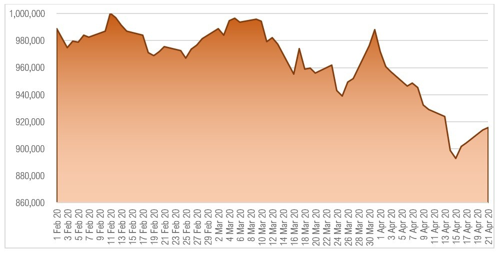 График 7. Изменение чистых международных резервов Армении в феврале-апреле 2020 г.