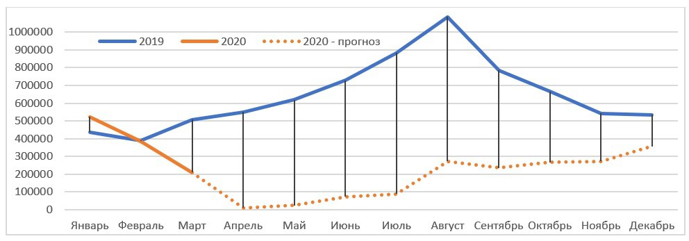 К сожалению, у нас нет полных данных по пассажиропотоку, поэтому придется ориентироваться на данные по числу совершенных рейсов, а в действительности пассажиропоток сократился еще сильнее.