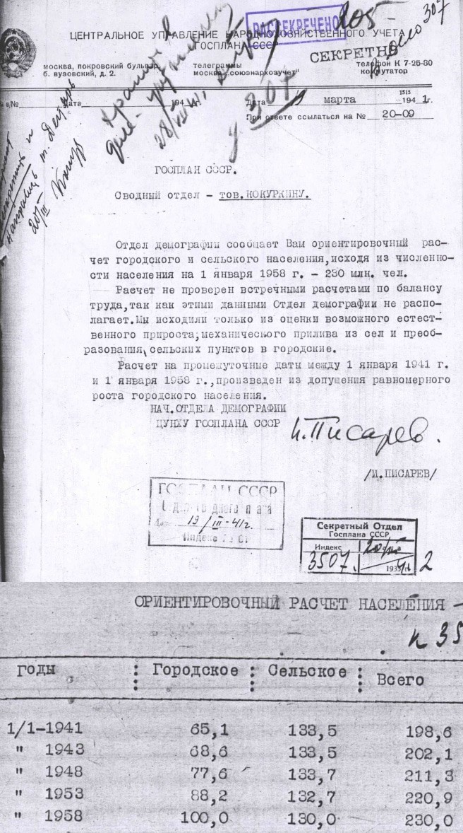 Таблица 1. Численность населения СССР, прогноз/оценка от 1941 года и фактически зарегистрированная динамика, млн. чел.