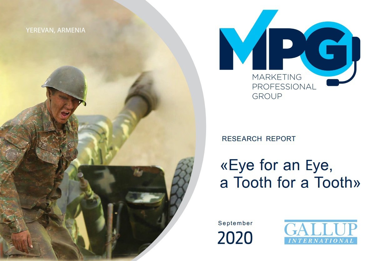 За предшествовавших два дня компания MPG / Gallup Int. провела социологический опрос в Армении относительно происходящих боевых действий. Было опрошено всего 400 человек, что дает довольно большую погрешность в ±5%. Это, однако, все еще достаточно чтобы получить общее представление о ситуации с общественным мнением. Отмечу, что организаторы изначально планировали опросить большее количество людей, но не смогли это сделать из-за ограниченности во времени и подозрительного отношения многих респондентов. Причиной тому то, что в последние дни были случаи, когда азербайджанская разведка обзванивала людей в Армении с целью посеять панику. Доклад с представлением результатом был озаглавлен ветхозаветной максимой «око за око, зуб за зуб»: